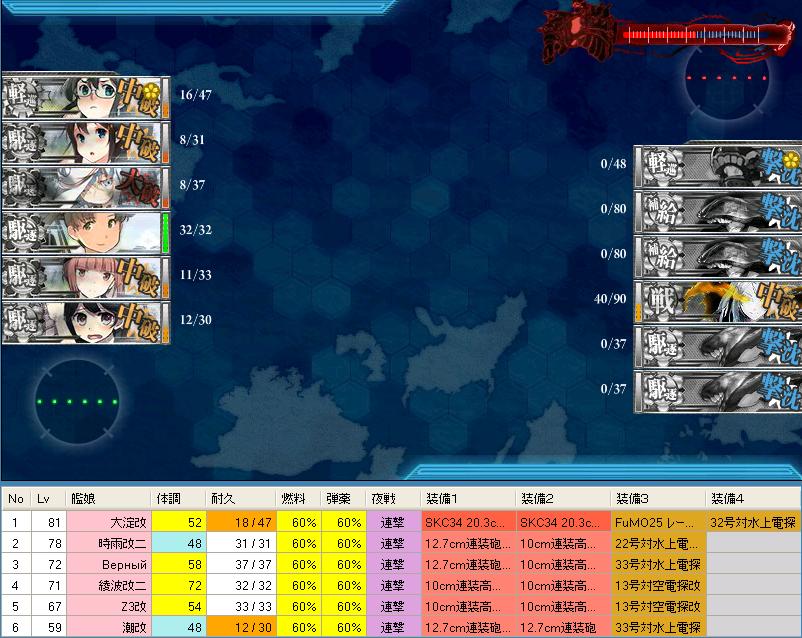 - ただし2マス目のタ級flagshipとリ級が連撃してきますのでそれなりのリスクはあります、ご注意ください。