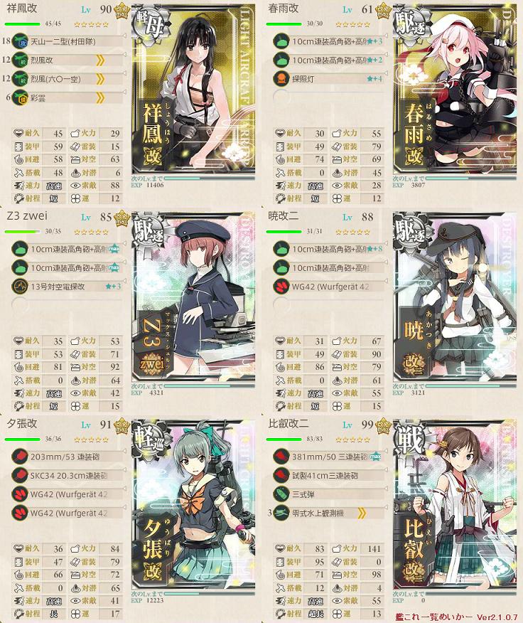 | 海域EXP | 下記の敵艦隊編成を参照 | |