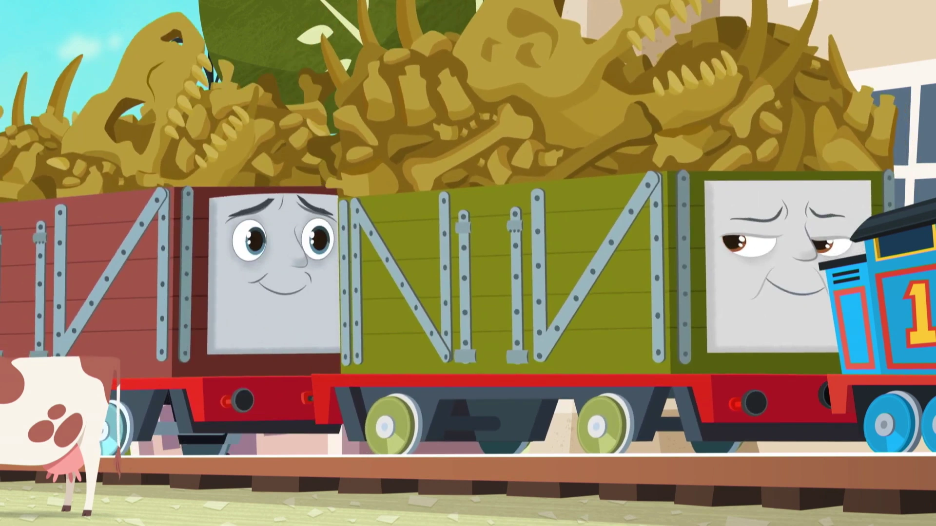 | TV版での経歴 | ・第1シーズンの頃はアニーとクララベルの様な顔だったが、第2シーズンから機関車達の様な灰色の顔に変わる*4*5。 ・貨車の顔のバリエーションは多く、シーズン毎に増えている*6。 ・第5シーズンではランプを装着した事があった。 ・表情の関係で、トードとスクラフィーとバルストロードの顏が使われる時があった。 ・CGアニメ以降は、機関車に悪戯する事が少なくなった。また、自分達の悪戯で大破する事も減った*7。 ・そして、人形劇時代は有蓋貨車にも顔が付いていたが、CGアニメ以降は顔の付いた有蓋貨車はしばらく登場しなくなり、第20シーズンにて再登場する。 ・フルCGになってから、声が高くなった*8。 ・日本語版では第18シーズンまで声の担当者が固定されていたが、最近では声の担当者が固定されなくなっている。 ・目が動くようになってから、目を回転させるようになった。 ・第19シーズンで機関車を揶揄うシーンが復活し、喋る回数が多くなる。 ・第20シーズンでは寝顔が見られ、可愛らしい面もある。 ・第21シーズンではフィリップの横に集団で集まり、彼の車体番号の68番を再現するパフォーマンスを披露した。 ・第23シーズンではレベッカが彼らを牽いた時はいつも通り、悪戯を仕掛けたが、彼女は彼ら以上に楽しんでいた為、唖然とした。 ・CGアニメ以降はノース・ウェスタン鉄道(ソドー鉄道)だけで無く、ファークァー採石場やブルーマウンテンの採石場にも姿を見せるようになった。 ・第7シーズンと第10シーズンと第13シーズンと第22シーズンは一言も喋らず、機関車に悪戯する描写も無かった。 ・第14シーズンと第15シーズンは出番は無い。 |