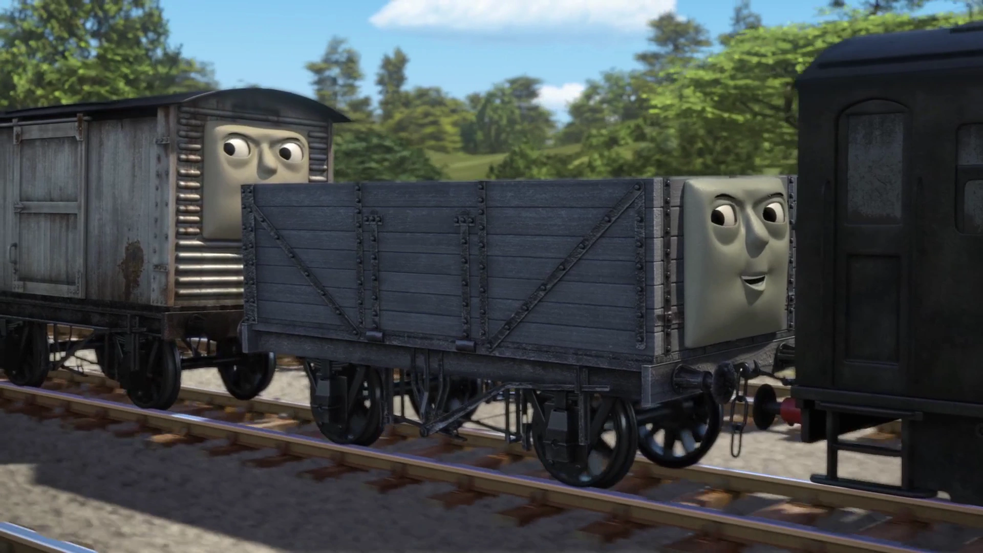 | 性格 | ・いたずらが大好きで、機関車の失敗を笑う。 ・機関車のより好みがあり、牽引される機関車によって態度を変える気まぐれ屋。 ・中には真面目な性格の貨車もおり、機関車の味方をする事もある。 ・のろのろ進むのが嫌いで、スピードが遅い機関車に体当たりをして無理やり猛スピードで走らせたりしている。 ・機関車や良識のある貨車にあだ名をつけて揶揄る傾向がある*2。 ・急かされたり、乱暴にぶつけられるのが嫌い*3。 ・基本的にエドワードとメイビスとソルティーとレベッカには素直に従うが、ディーゼルとバルストロードを嫌っている。 |