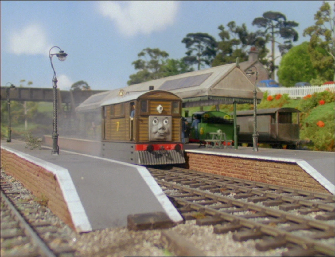 | TV版 | ・トーマスの支線とループ線のジャンクション駅。 ・クロスビー駅との環状線路がある。 ・プラットフォームは2つで、三角状のガラス屋根と本の屋台があり、真上に歩道橋がある。 ・近くに操車場と機関庫と客車庫がある。 ・第1シーズンから第4シーズンまで登場。 ・第3シーズンでエドワードがパーシーに嵐が来る事を知らせたのは当駅。 ・ジェームスがトビーに暴言を浴びせたのも当駅であり、パーシーがドラゴンに驚いたのもこの場所である。第8シーズン『トーマスとサーカス』に登場する予定だったが、尺の都合でカットとなった。 ・第19シーズンでは言及でのみ登場している。 |