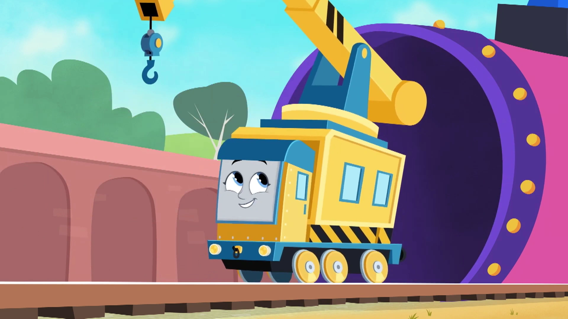 | 説明 | ・ブレンダム港に新しくやって来たガントリークレーンの女の子。 ・ソルティー曰く『大きくて新しくて凄いクレーン』。 ・メインランドのクレーン工場から運ばれて来た*1*2。 ・『All Engines Go』シリーズでは、ディーゼルエンジンで動くクレーン車となり自由に線路を走れるようになり、島で最高の修理クルーとして活躍する事になる*3。 |