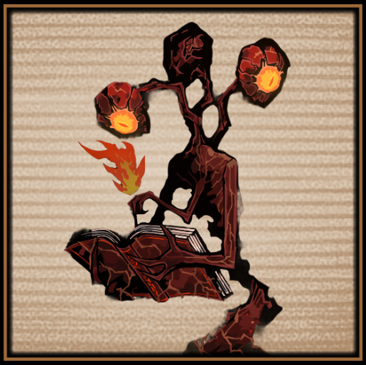 燃える羽根ペンで何か本に記録しているが、その内容は理解できず、見た者は精神へダメージを受けてしまう。