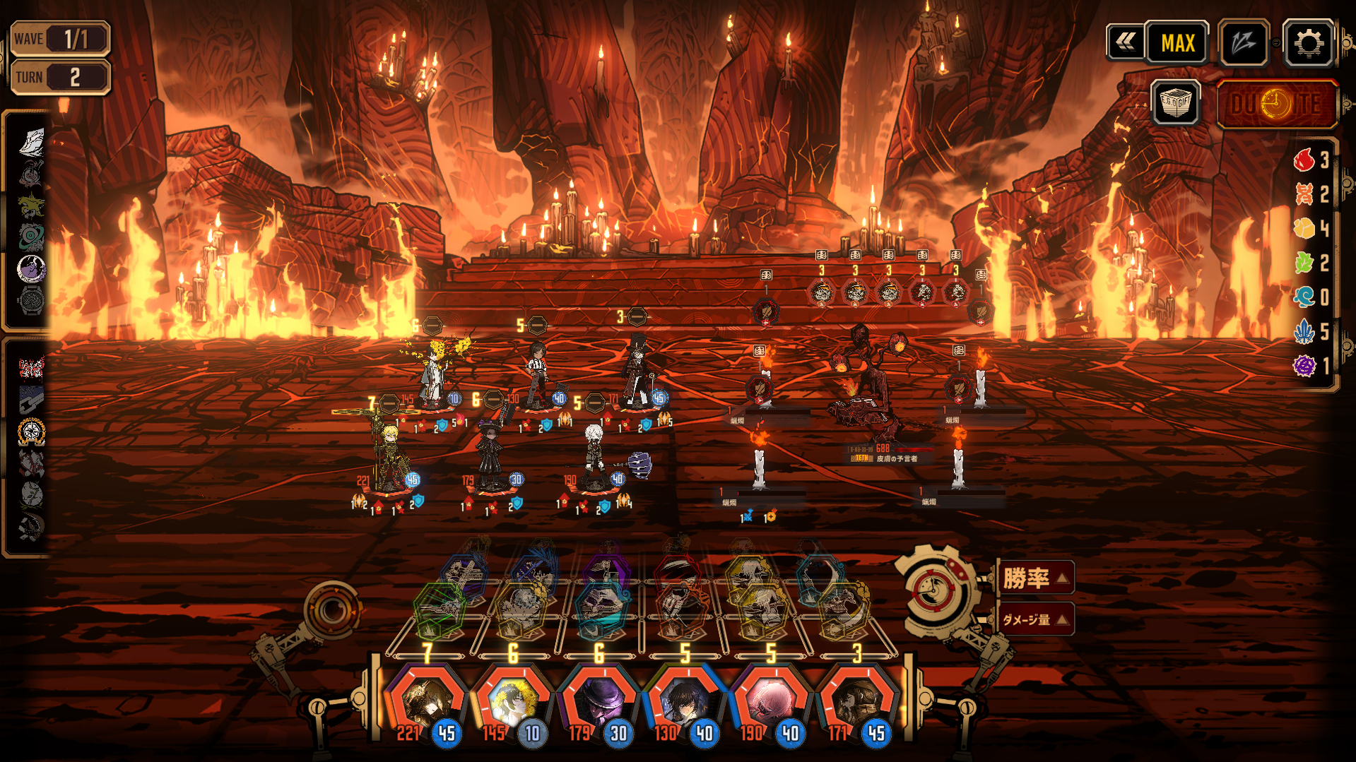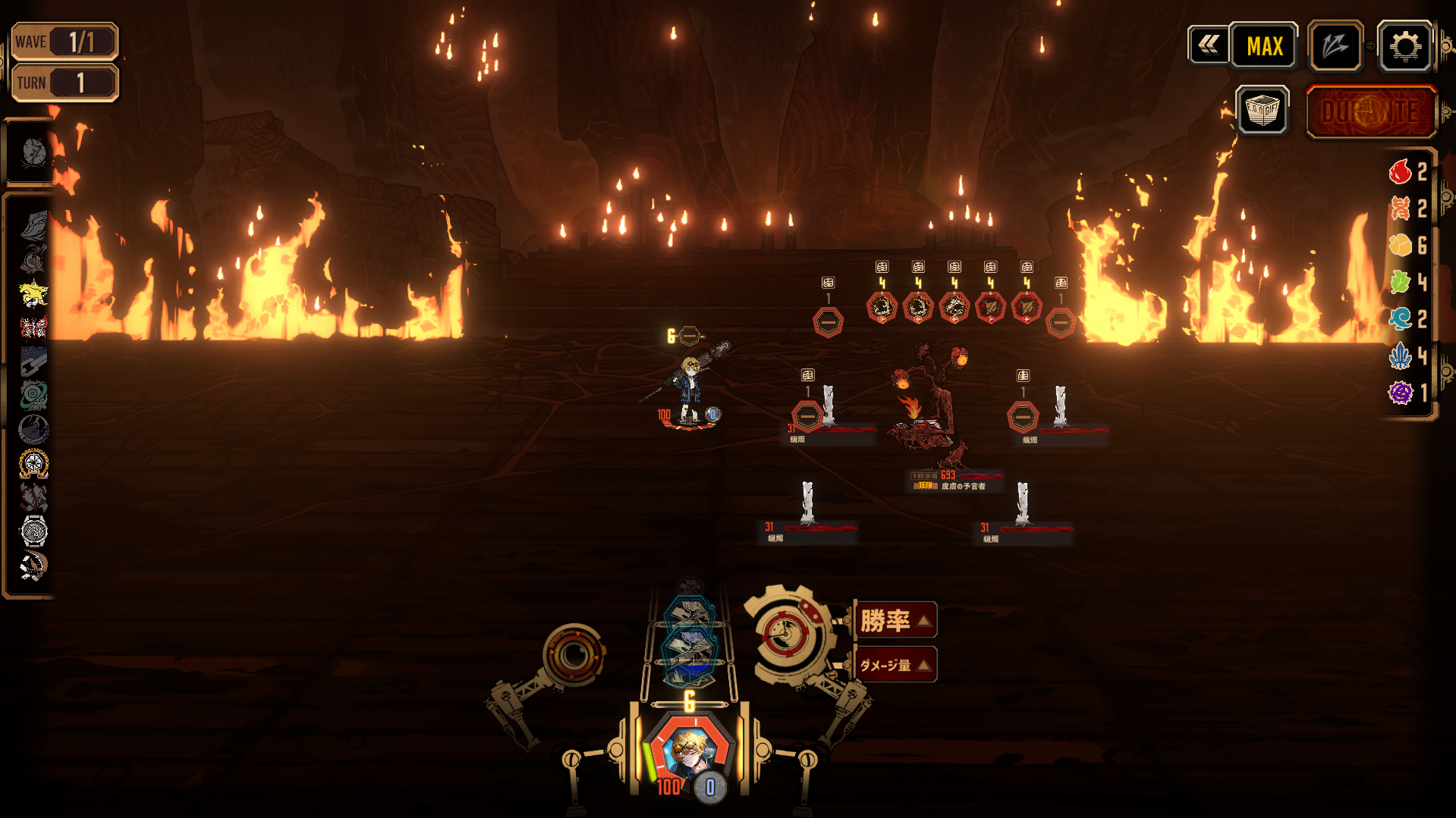 - 固定ダメージが豊富な出血・破裂パーティなら蝋燭のギミックを無視して1ターン目から本体をひたすら叩くという手段がある。