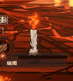 | 体力が0にならない。 体力が1のとき、火が灯って攻撃スキルを使用する。 |