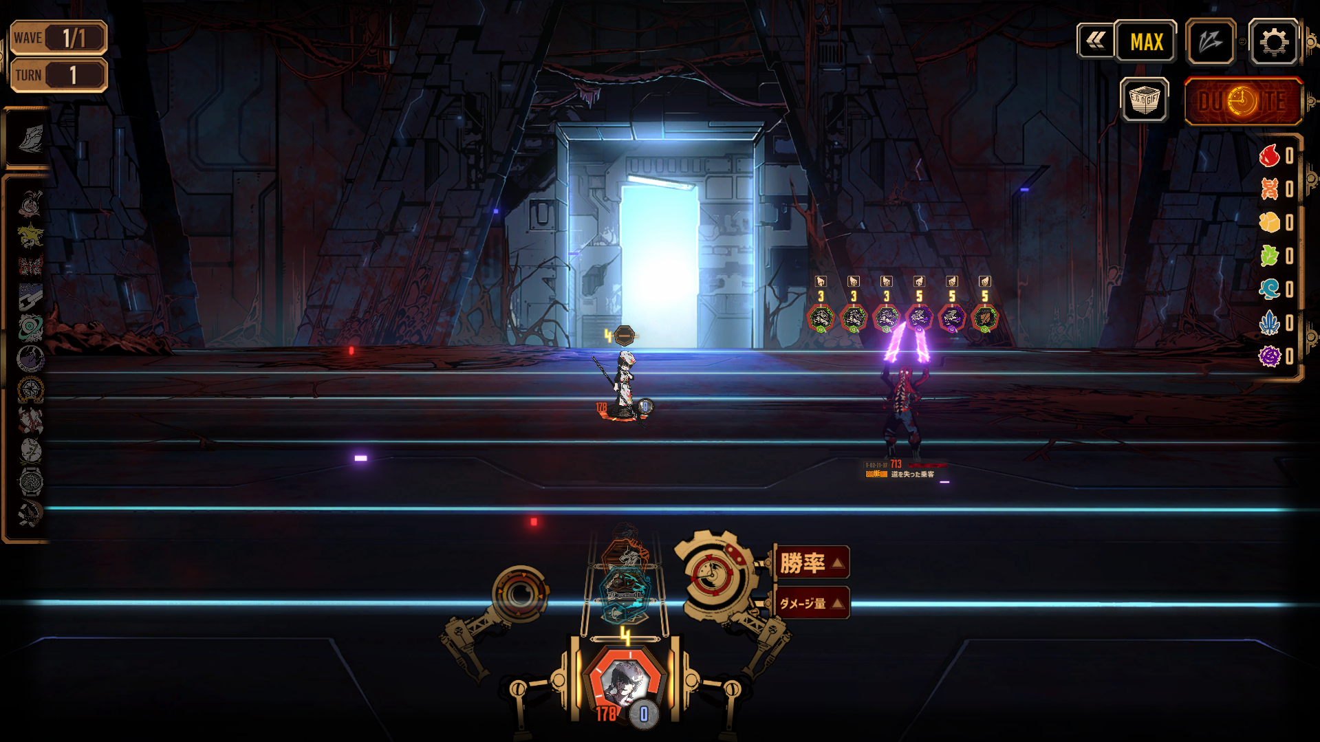 - 左刃と右刃が二つとも混乱状態なら、次元生成が1ターン遅れる。