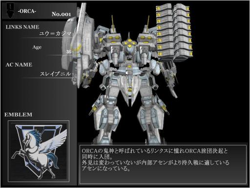 リンクス名は以前別の名前を使っていたが、心変わりしてORCA旅団へ入団する際に今の名前へと変更した。
