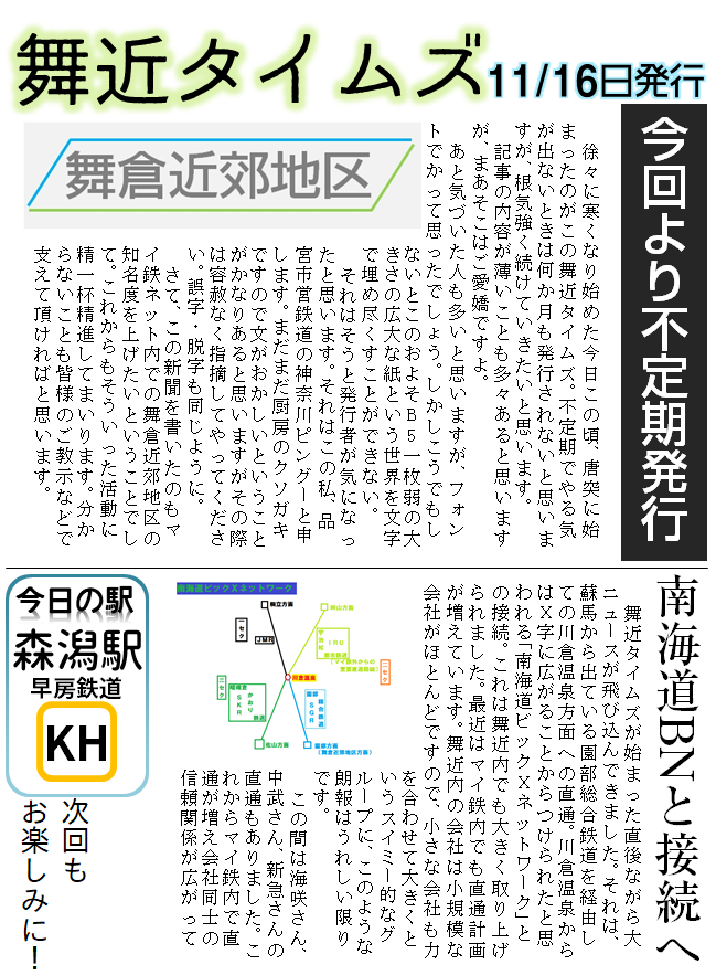 不定期で発行している舞近内のニュースを取り上げた新聞です。