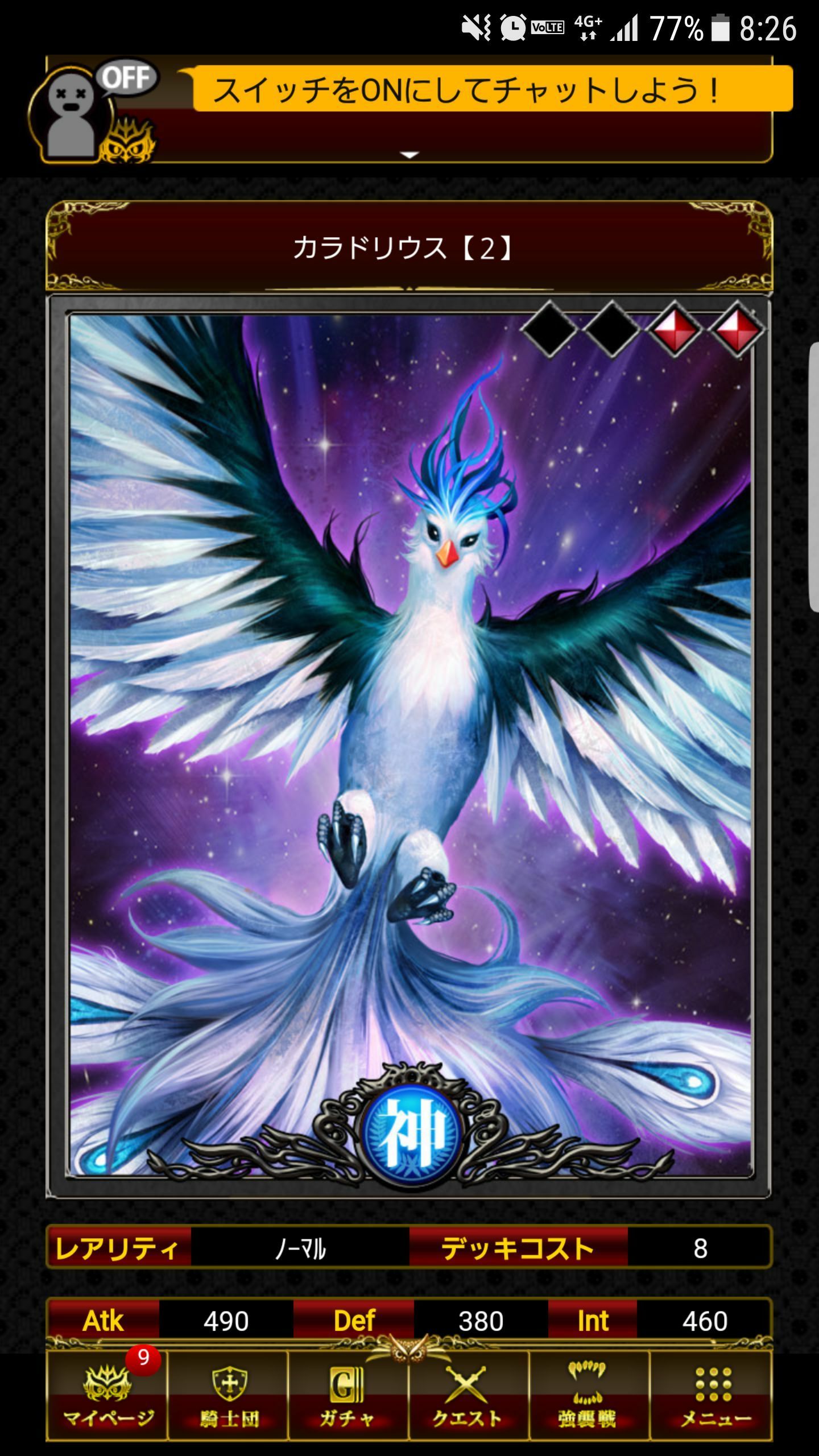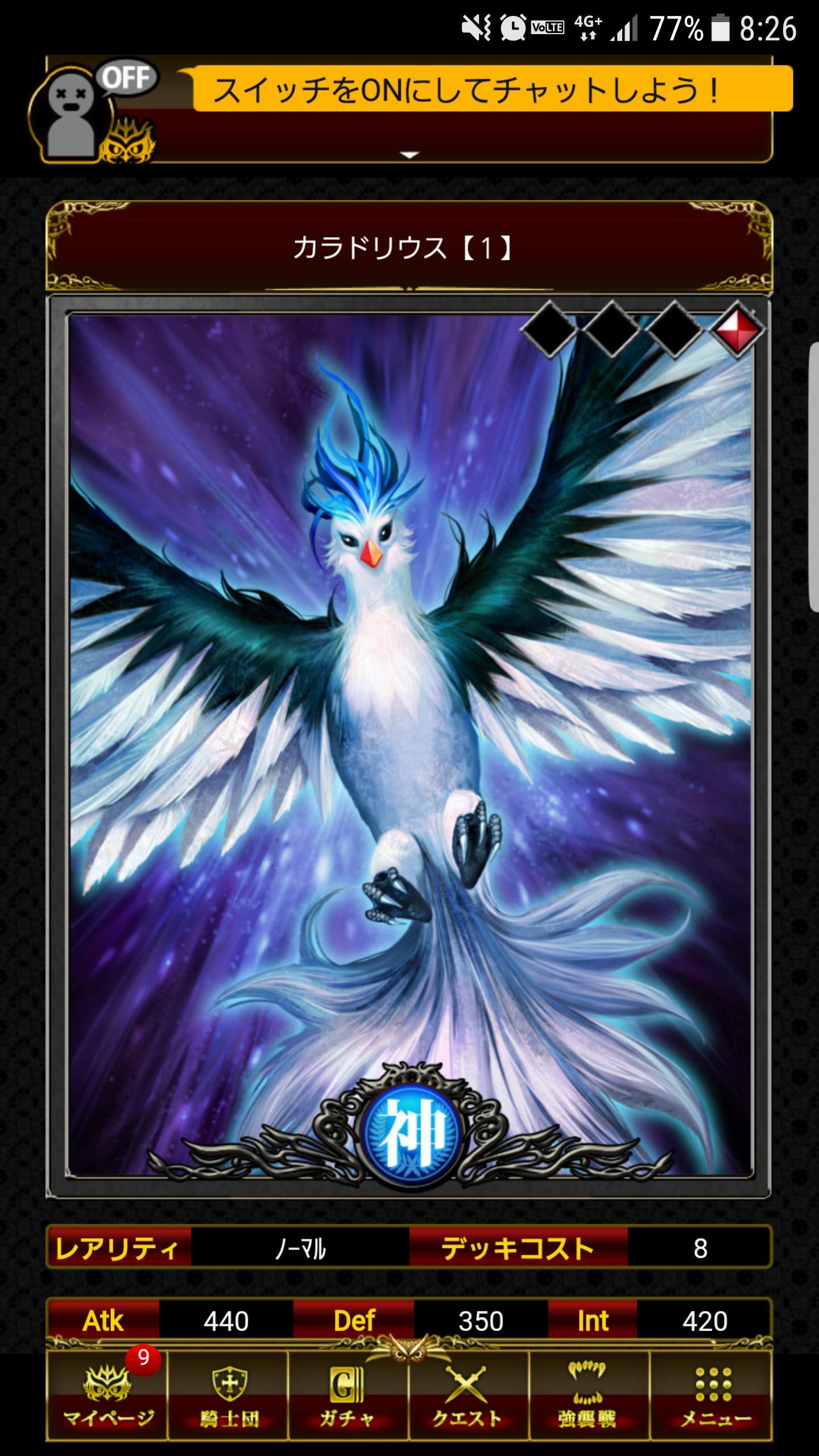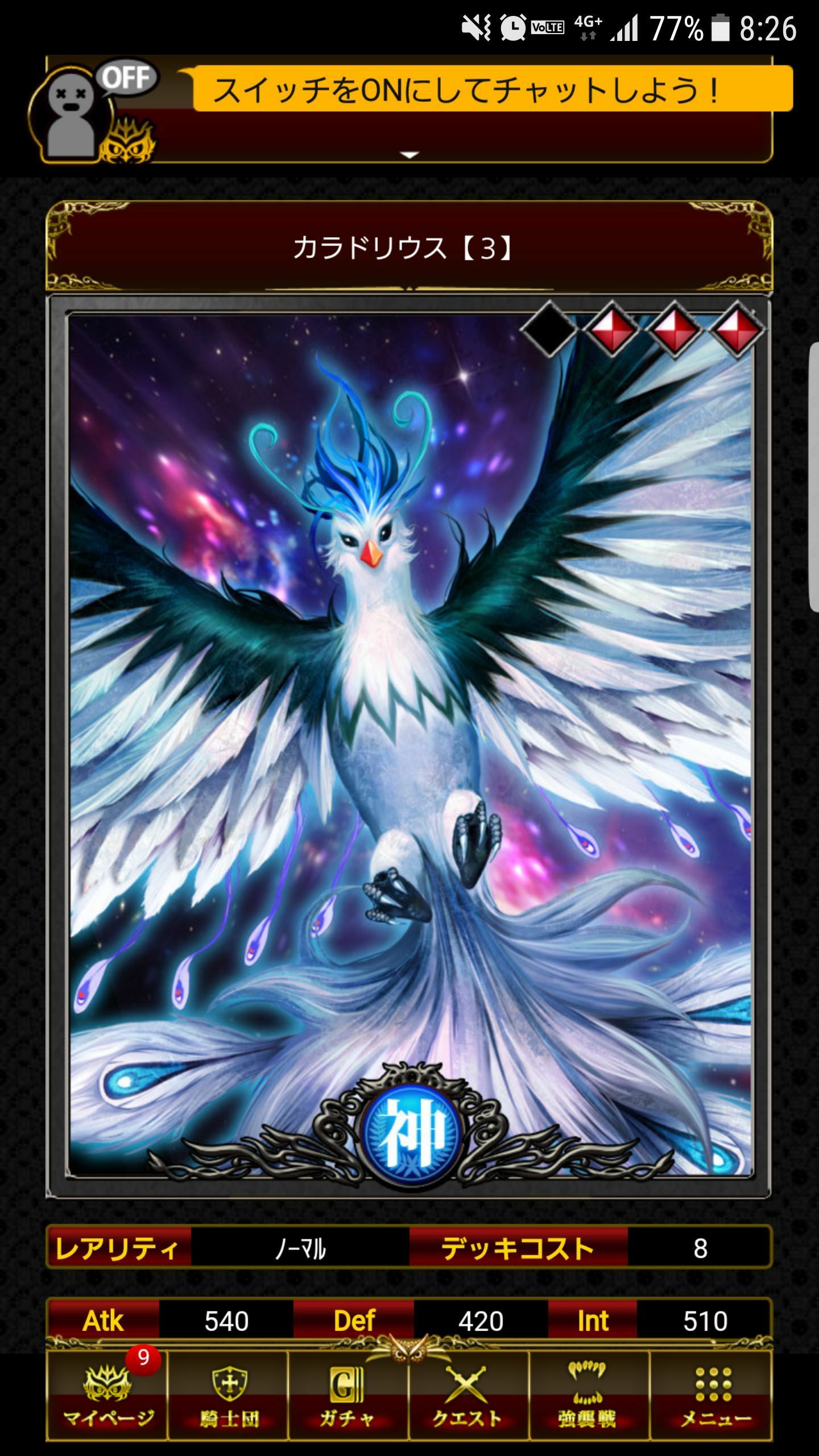 | カラドリウスの目は赤く燃え上がり、光はさらに輝きを増す。その眼は戦場において、敵のあらゆる弱点を看破する力があるという。 |