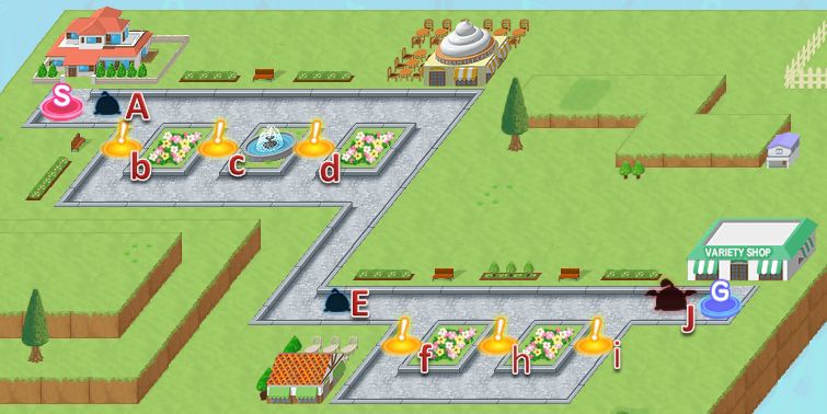 | 全回収 | 152 | S→A→b→c→d→E →f→h→i→J→G | 1800 | 「!」は食料だけなので全回収するメリットは少ない |