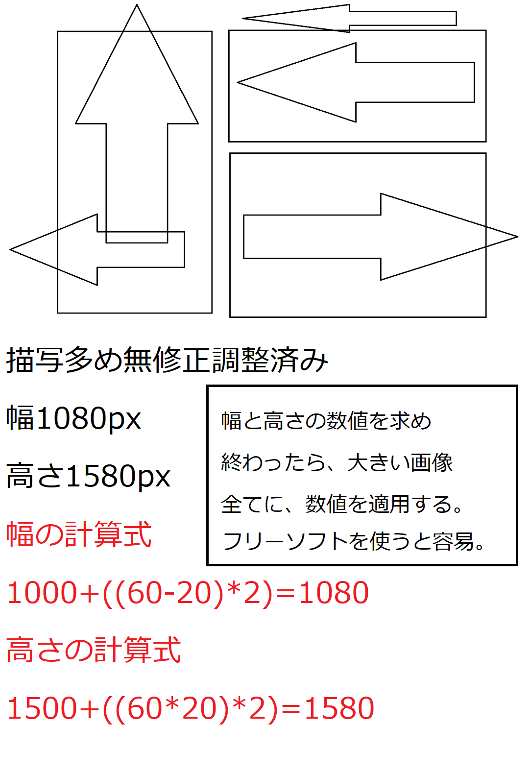 幅と高さの差分を、それぞれ以前の方法で求めたら、以下の計算式で幅と高さを算出する。