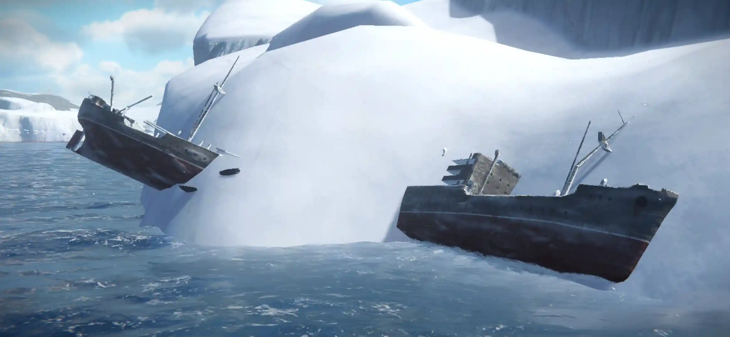 マップで黄色く縁取りされた氷山は一定度のダメージを与えると分裂した後海に沈むため、試合後半は気が付いたら遮蔽が少なくなってる!なんてことが多々あるため注意。正面から突撃すると高確率で集中砲火を浴びるため、側面から攻めたほうがいい。マップに浮いている氷はぶつかってもダメージにはならないが、邪魔になるので通る時は壊そう。空母で戦う時には艦載機をぶつけないように気を付けよう