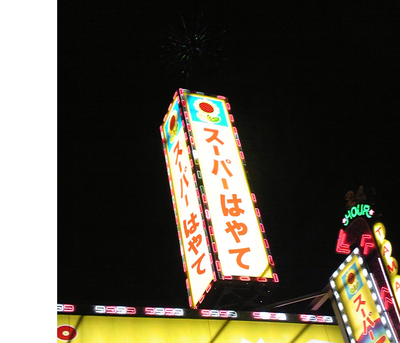パチンコ屋と見間違うほどの派手な看板に定評がある。近隣住民には「光害だ。」や「環境破壊を激しく促進している。」と看板に対してはいまひとつの反応である。