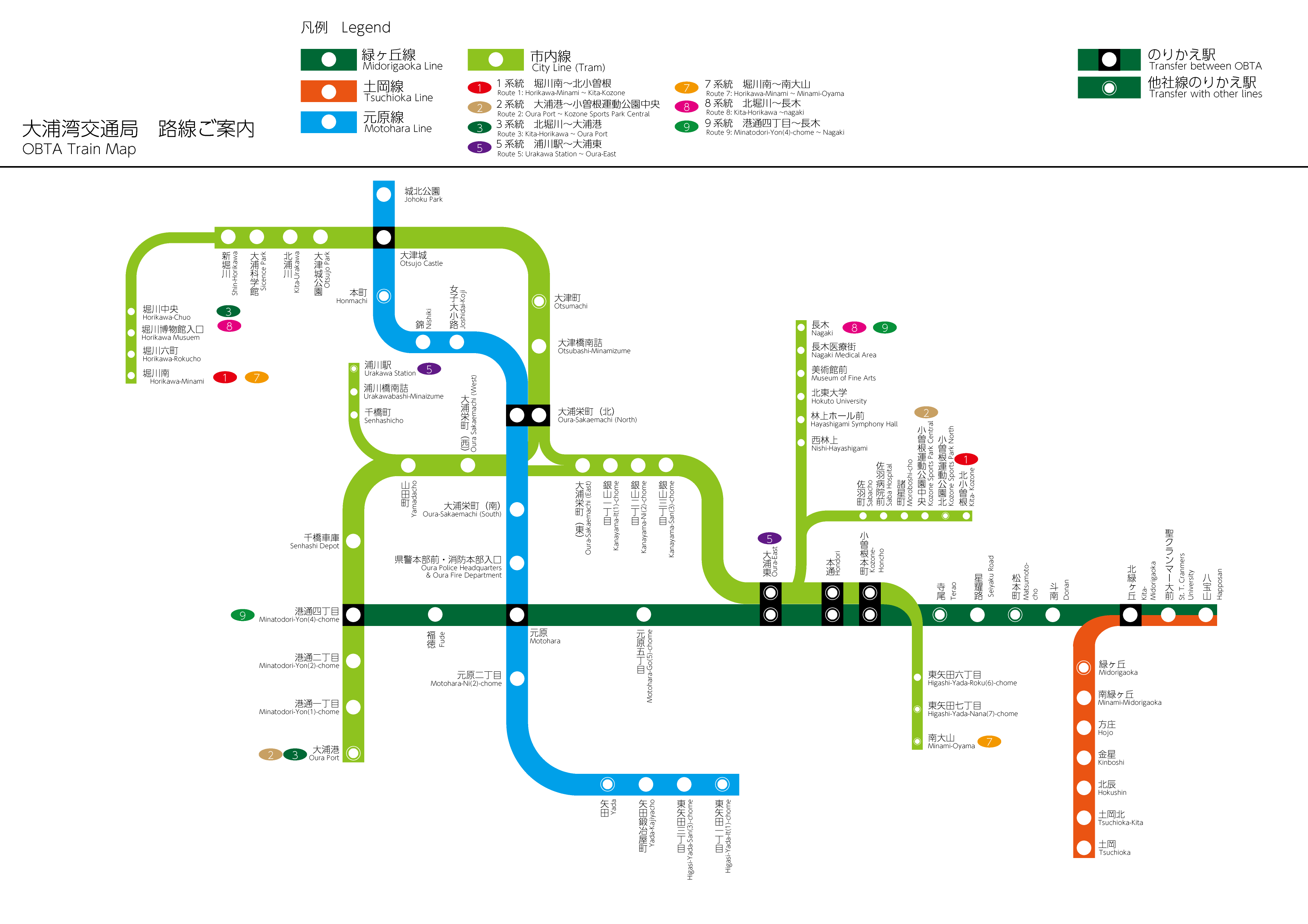| 1 | 堀川南~大津町~大浦栄町~北小曽根 | 地下鉄経由 | 堀川 |