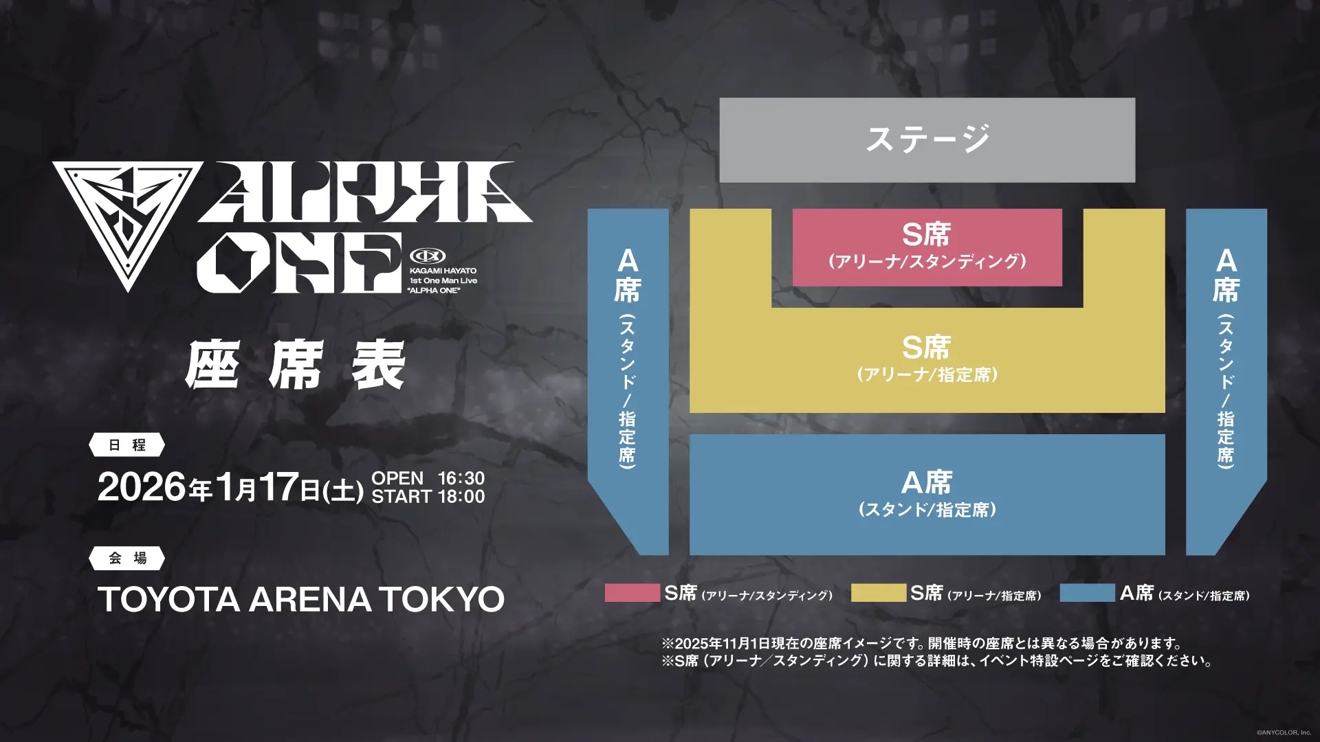 - 2025/11/10 にじさんじ「加賀美ハヤト 1st One Man Live "ALPHA ONE"」グッズを2025年11月14日(金)18時より事前販売開始! (ANYCOLOR公式サイト / PR TIMES)