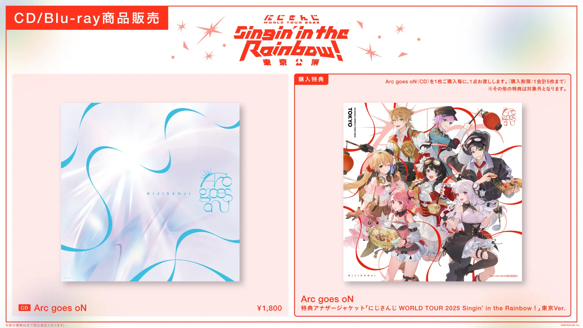 - 2025/12/26 にじさんじ公式より東京公演メンバーが揃った「Arc goes oN」限定アナザージャケットが公開された。発売は1/17/10:00~