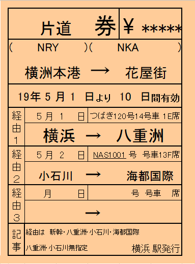 | NRY八森線 | 5 | 八重洲 | 大森 | 普通 | ATS-P | 130km | 全線通し利用時に加算運賃有 |