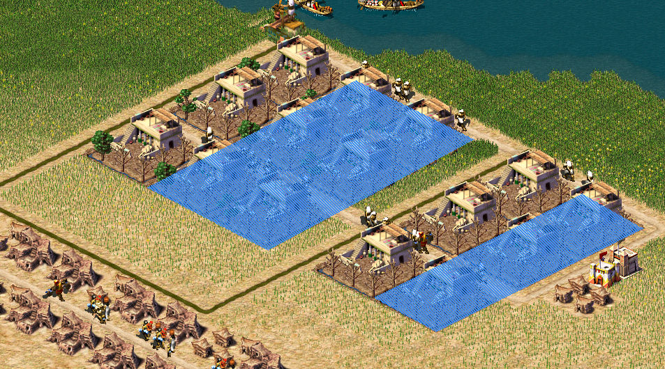 実は水路と農場は接していなくても水は供給される。 そのことを利用すれば無駄な水路を引かない分、農場を多く作れる。