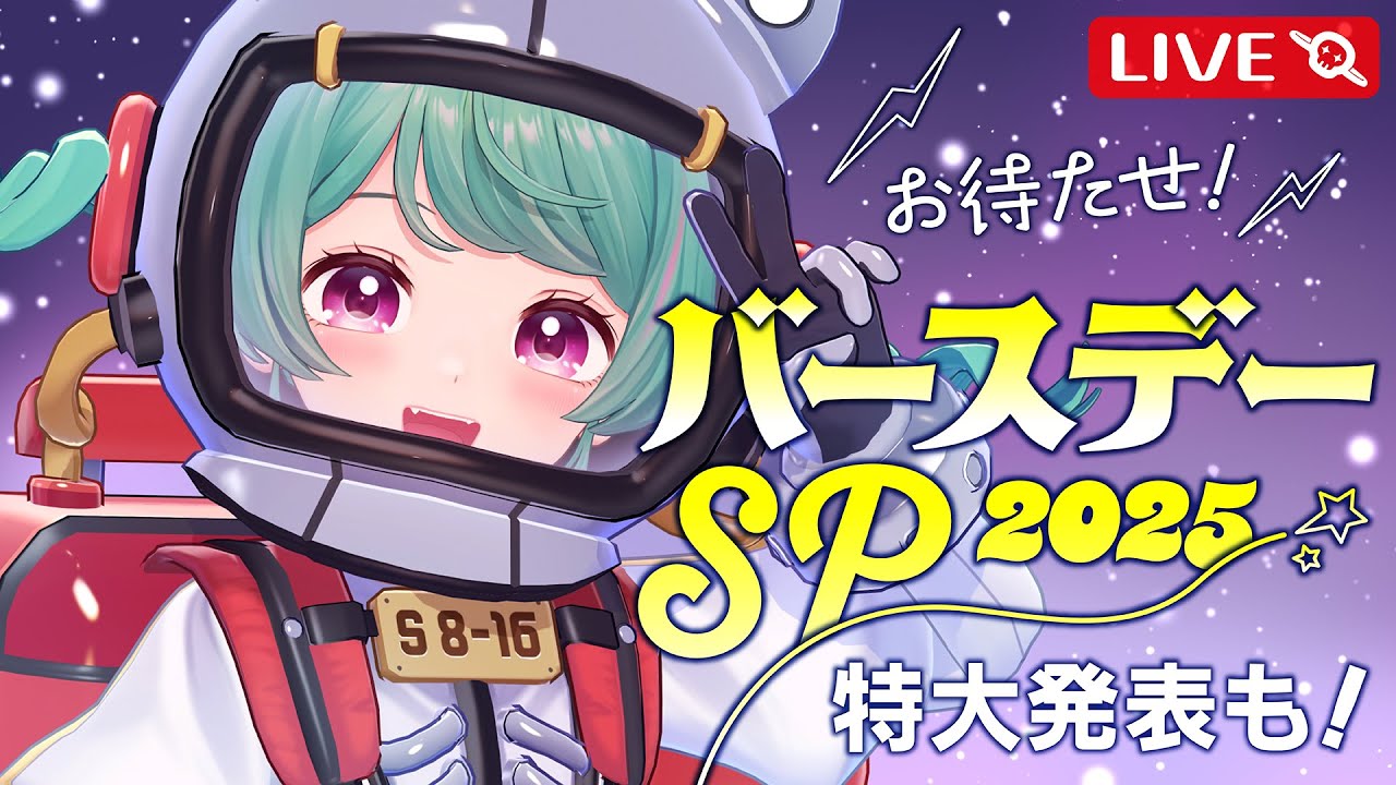 | 説明 | 2025年のさえきやひろのバースデー配信。フルトラッキングスタジオでの新衣装の披露、グッズ販売や個展イベント等の発表が行われた。 |