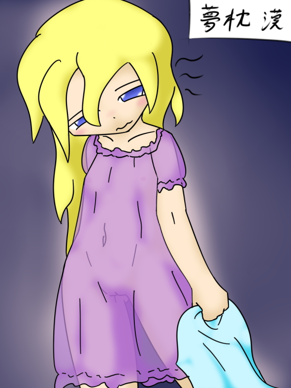 格好は紫のネグリシャをいつも着ており、いつも寝ているためかいつも青い瞳は眠そうに目を細めており、長い金髪はボサボサしている。