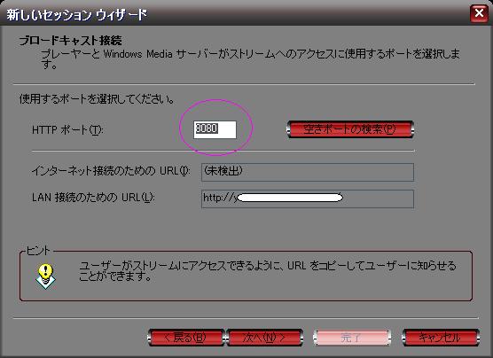 WMP等でURLを開く→http://配信者のIP:8080(設定したポート番号)
