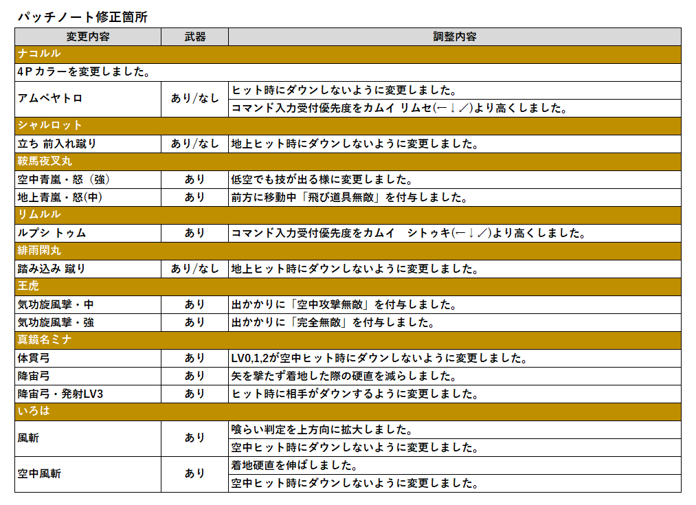 ・アーケード版はこれらのパッチが適用されていませんのでご注意下さい。