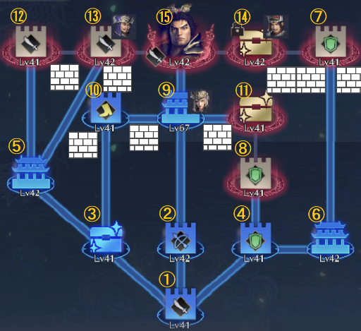- 関羽救出戦3、6、8、9のうち2つをクリアすると3と6から10への道が繋がる