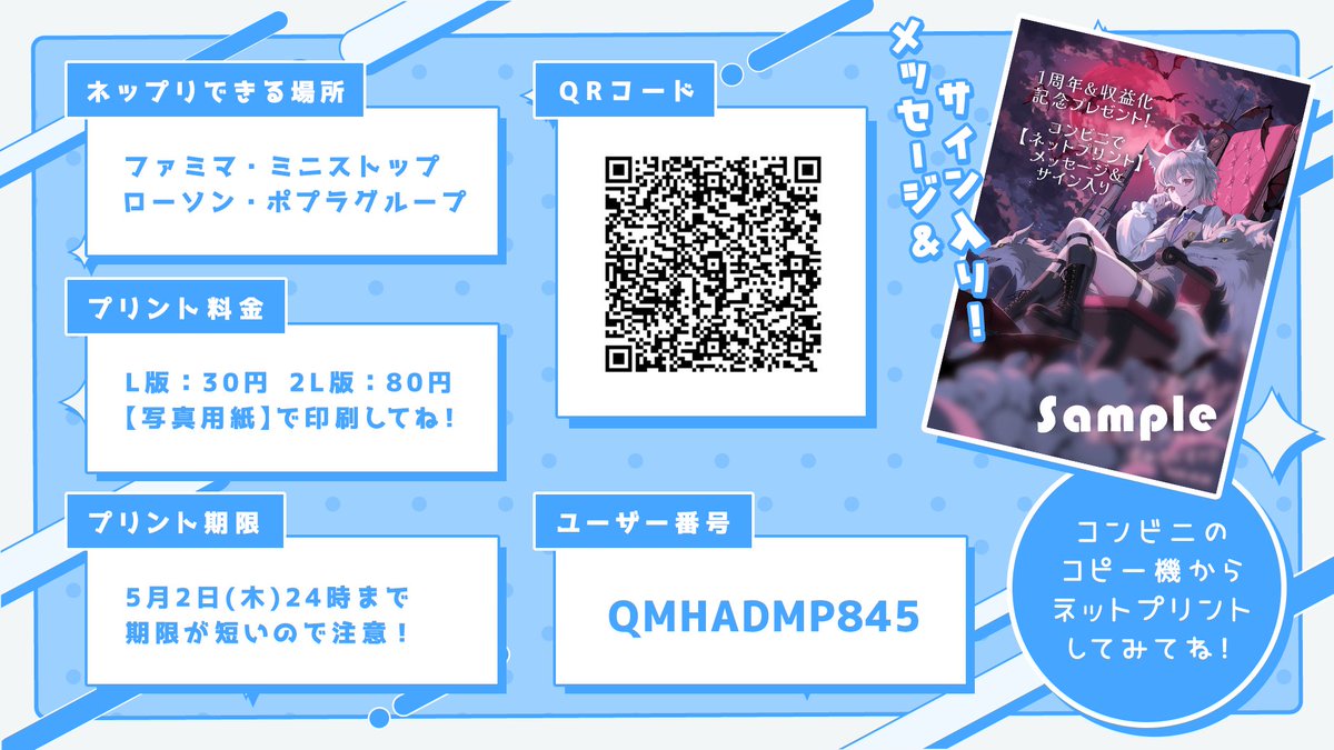 レイル君のチャンネルで1周年記念配信!!(ネットプリント期限は終了)