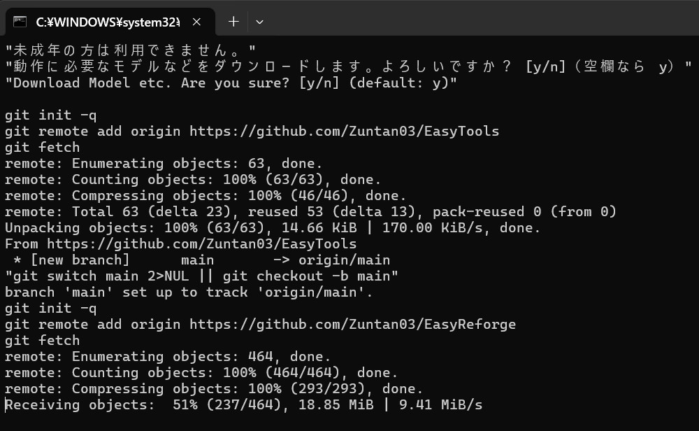基本的にはこの一回起動したあとは触る必要ないですが、update.batを起動してeasyreforgeのアップデートをかけると4000番代の環境に巻き戻ってしまうので再びこの操作が必要です。