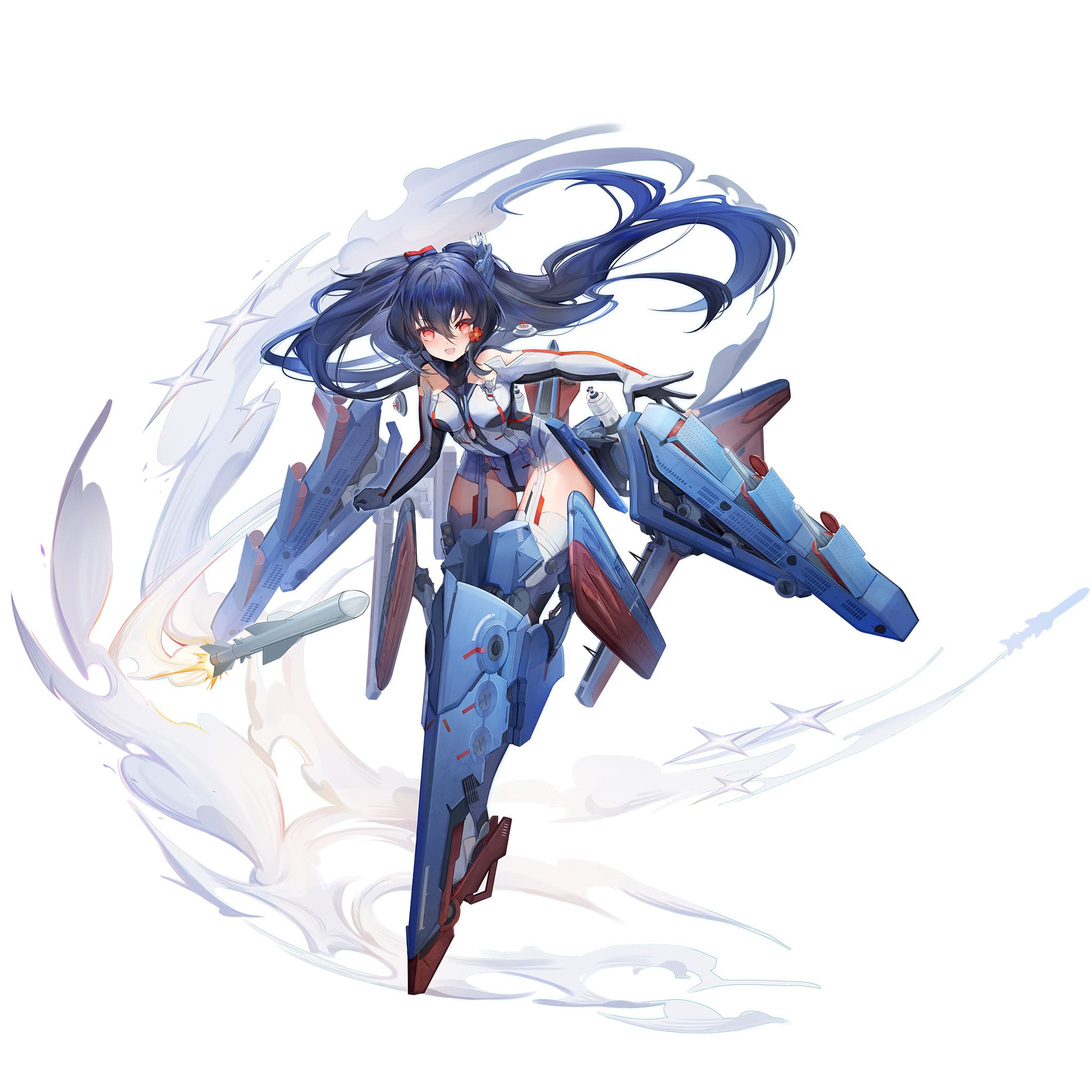 目の色が青から赤に変化し、髪型もなぜかツーサイドアップからツインテールに変わっている。