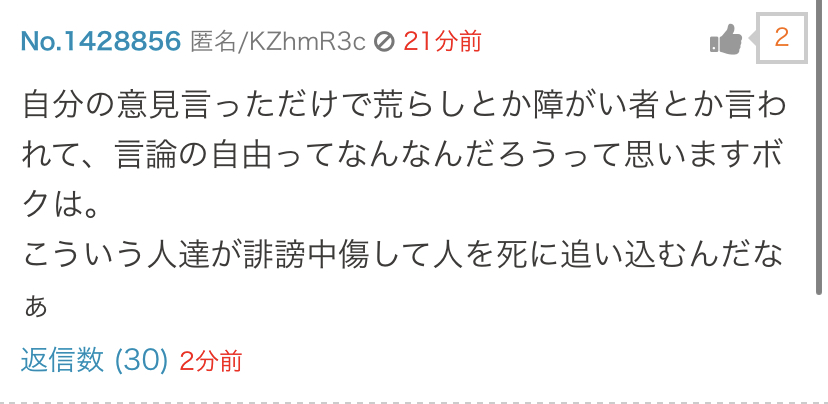 匿名にフルボッコにされると、言論の自由に逃げ、被害者面しだした