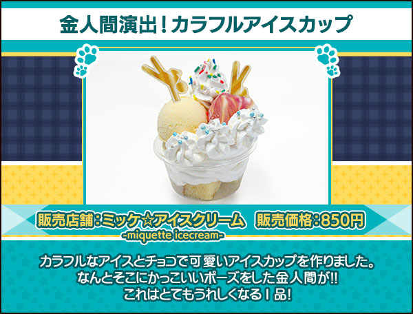 | 円城寺 道流 | アイスクリームも盛り付け終わったッス!おっと、仕上げに金人間を刺して…っと。 | |