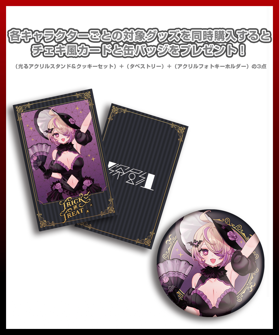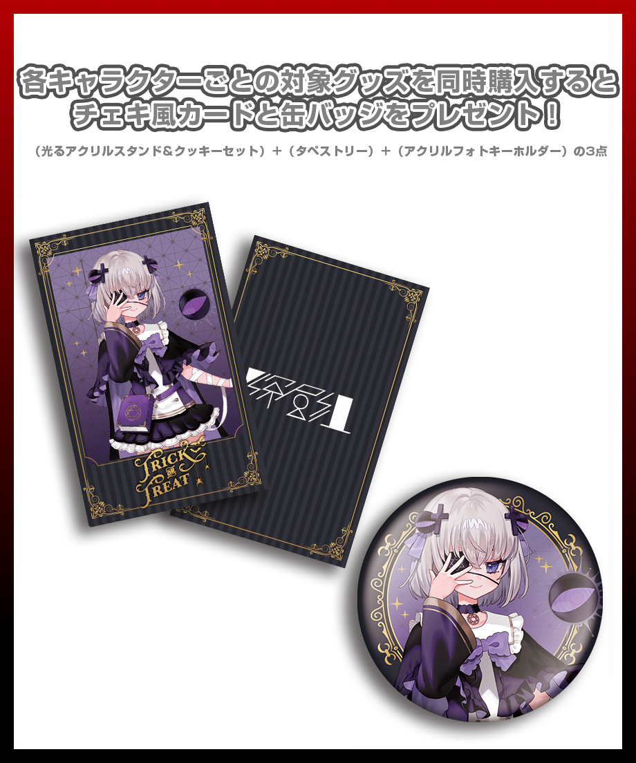 - イラスト:<アクリルアートパネル>クロがねや先生(@fangjoker524),<フェイスタオル>胡宮先生(@komiya_latte)