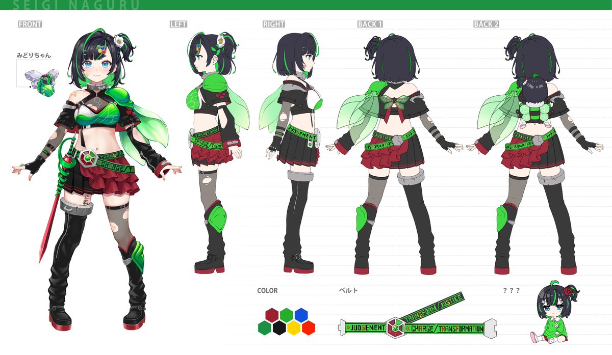 | みどりちゃん ??? | ハチ 幼児 | 独立型 独立型 | 出番は少ない 詳細不明。公式の三面図に記載。正義なぐるにそっくり | |