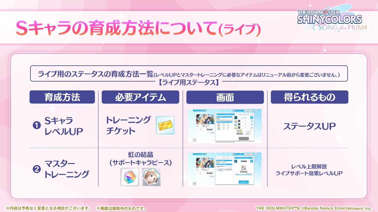 - Sキャラにライブ用のパラメータを追加し、ライブユニットに編成できるようにしました。