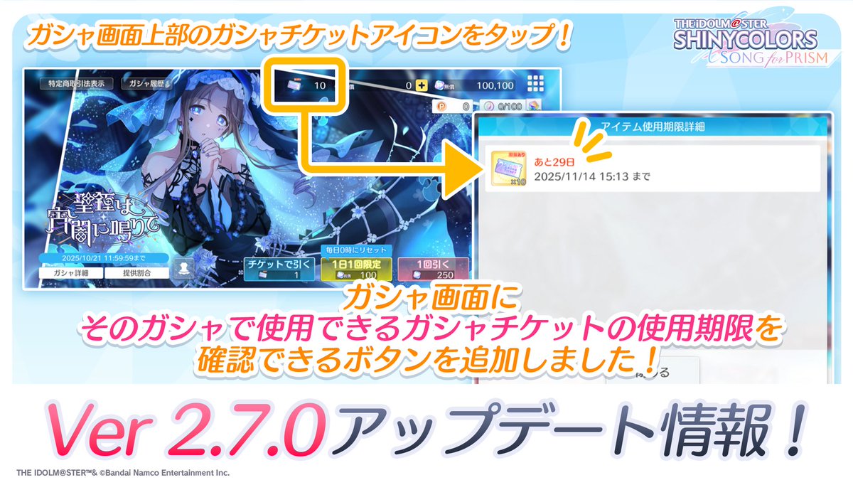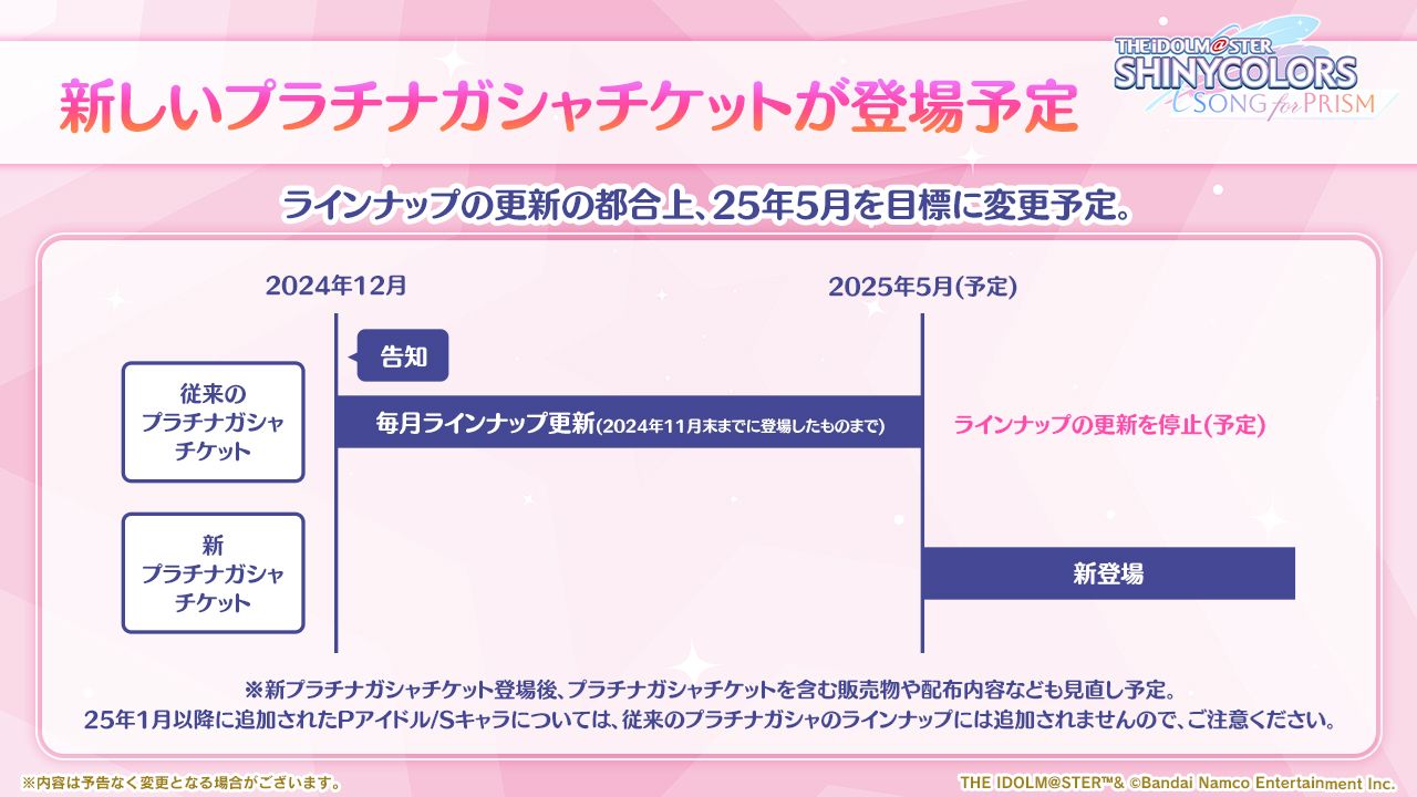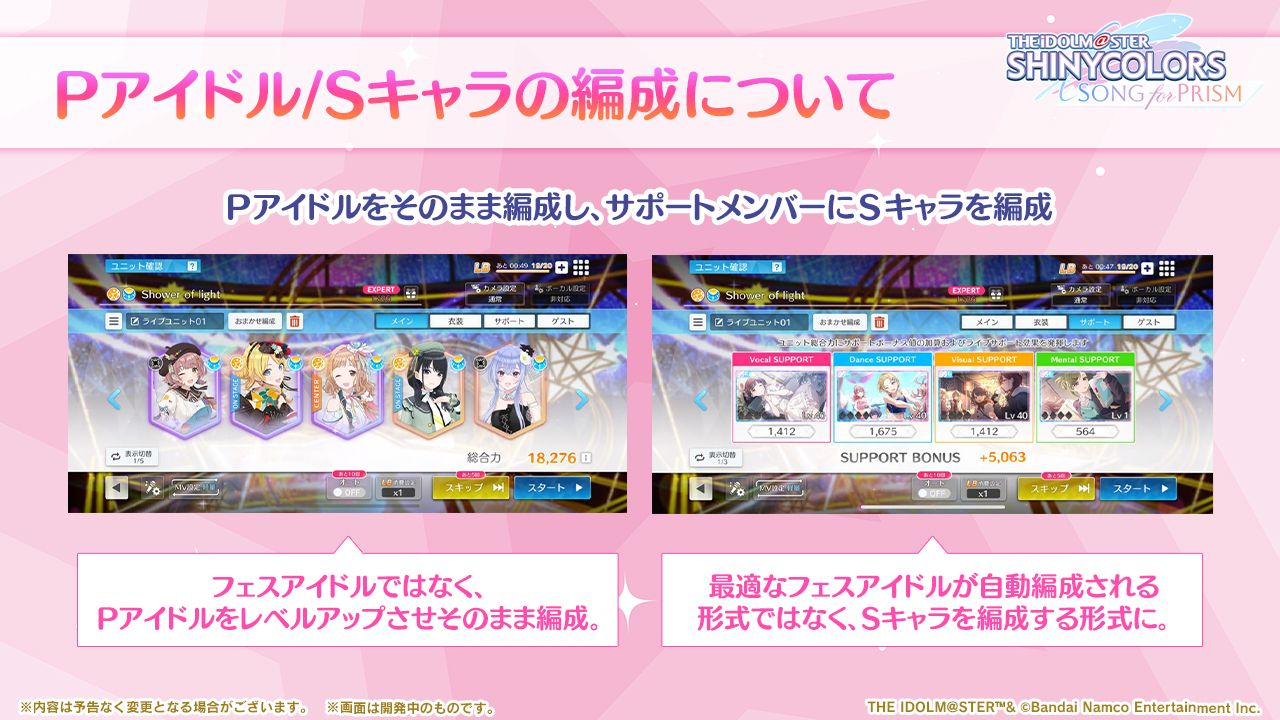 - Pアイドルガシャ/Sキャラガシャの統合に伴いガシャ演出をリニューアルしました。