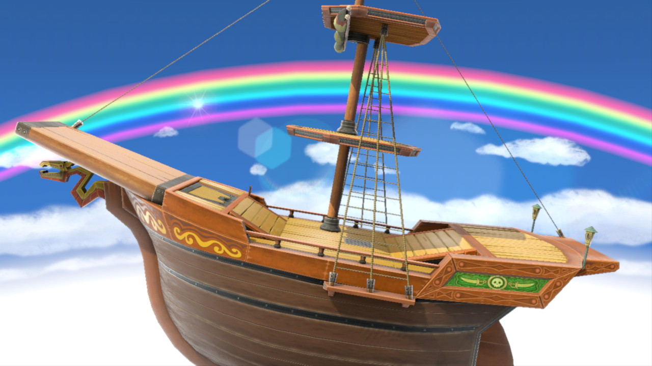 落水すると右方向に向かって流されて行くが、海賊船の舳先にぶつかると、強烈なメテオにより蓄積ダメージ量に関わらず即ミスになってしまう。