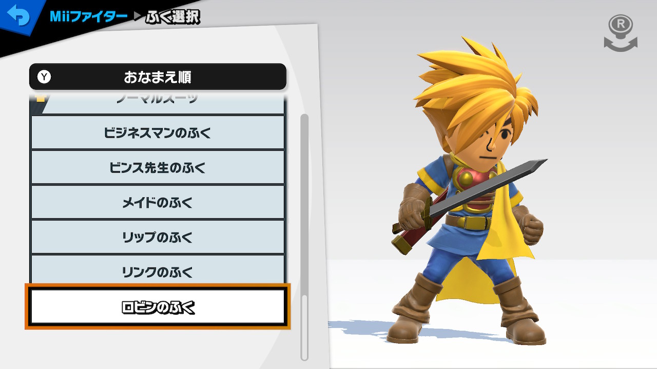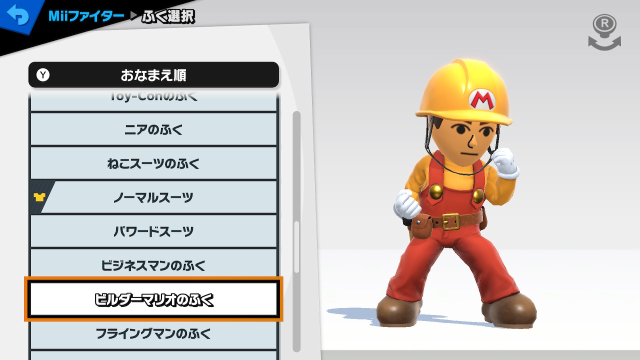| ふく | クリアゲッター:「その他」の「Miiの「ふく」を 10種類手に入れる」を達成する | |