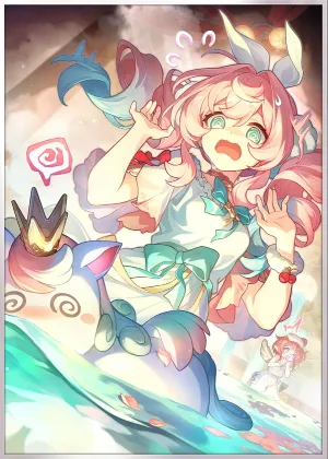 海の歌は何がため(★5/跳躍(期間限定)) [HP:952/攻撃力:635/防御力:463 効果:効果命中アップ。敵にデバフを付与した時、80%の基礎確率で敵を「魂迷」状態にする、3ターン継続。「魂迷」状態の敵は装備キャラにデバフを1つ付与されるごとに受ける持続ダメージアップ、6層累積できる。「魂迷」状態の敵を攻撃した味方の速度アップ、3ターン継続]