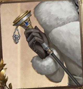 香りのパウダーが入った杖を優しく持ち、それは金属の杖の先端まで細かくデザインされています。