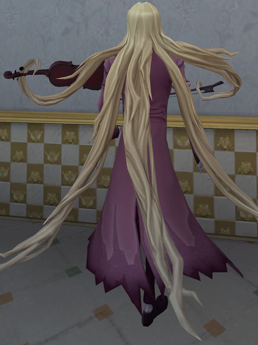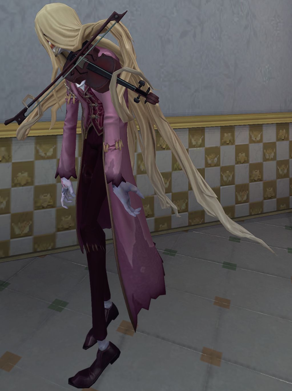 作曲家の衣装はやや役割が違って、弓使いの僅かな理性と一族の特徴の融合であり、現実には存在しない意識の世界の産物となっています。
