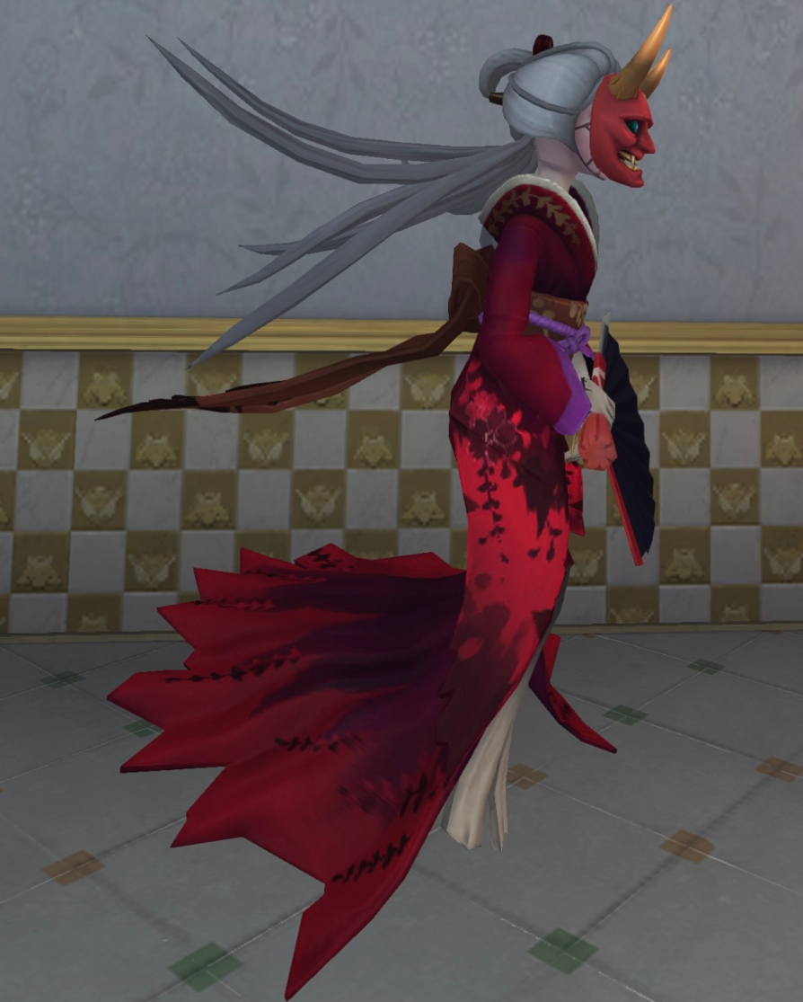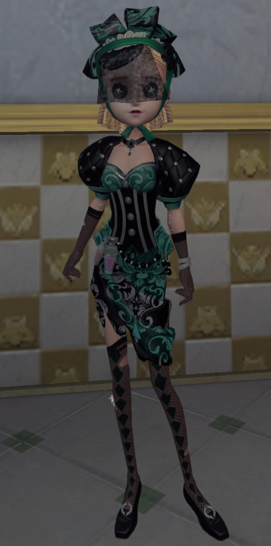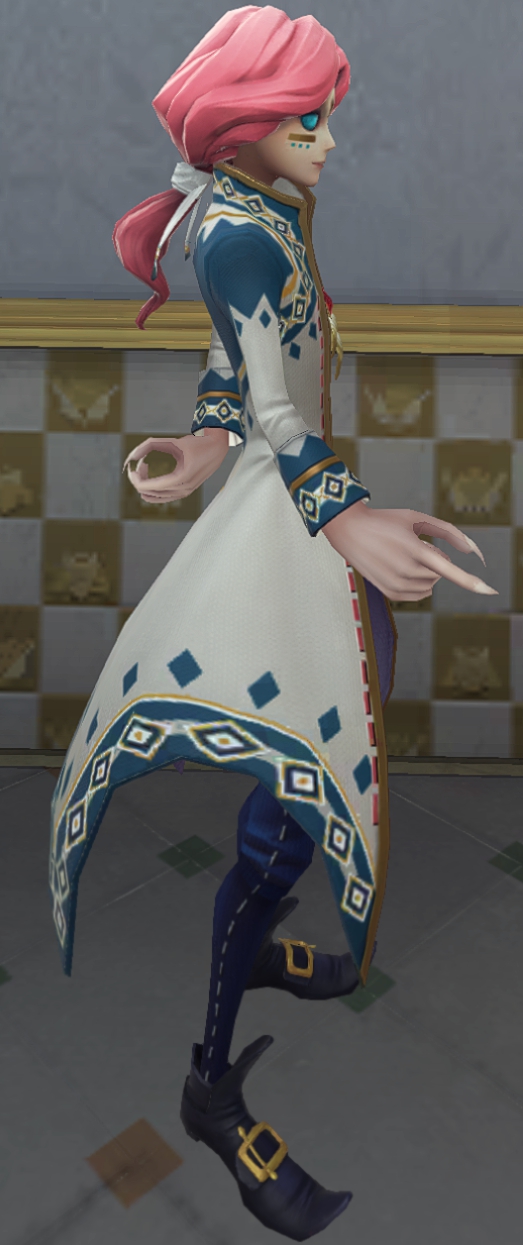 | 補足 | このガチャのテーマにはハリーポッターシリーズのモチーフが多く存在しており、この衣装でのハリーポッター要素は「生き残った男(の子)」繋がりで主人公のハリー、もしくはその敵であるヴォルデモートと考えられる。 展示モーションで霊のようなものが出てくるのは作中で登場する分裂した魂を道具に保存する「分霊箱」をモデルにしたと思われ、磁石にあるマークの△の中に○が入った紋様は作中で死の秘宝を示すマークからニワトコの杖を排除したマークではないだろうか(ヴォルデモートはニワトコの杖を扱えなかった)。 | |