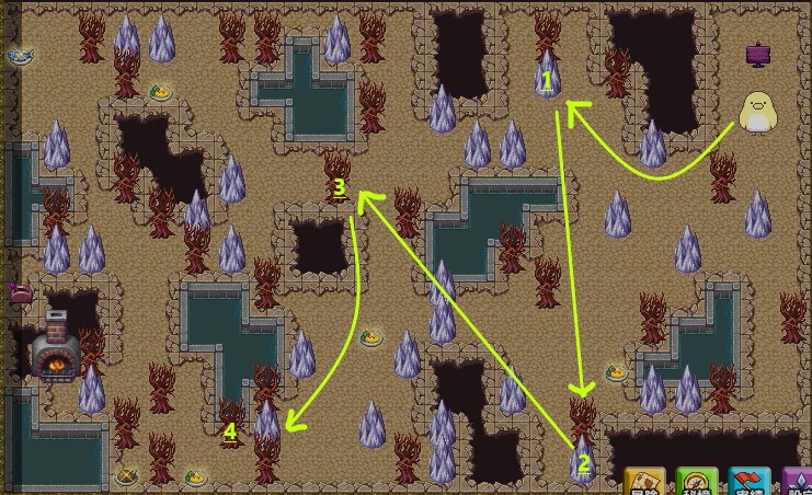 画像の4の位置にある障害物を破壊すると闇が完全に晴れる。