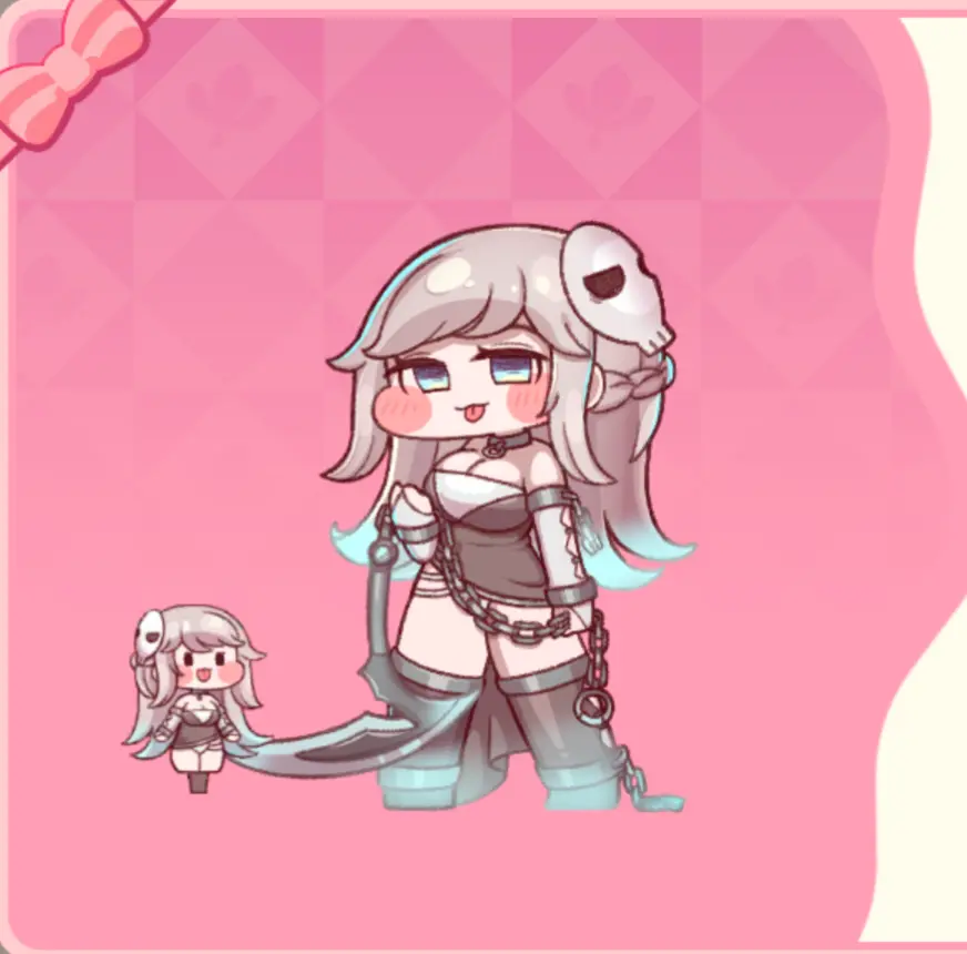 - 体にぴったり張り付くミニマルな衣装で布面積は極小。立っているだけでバストモーフィングが発生するほどのナイスバディを誇る。ヒルデ実装以前は使徒の中で最も豊かなバストを持ち、その後もシーラやセリーネ(グローバル版2025/12/02時点で未登場)、ディアナといったグラマラス系使徒よりも大きいほどだ。