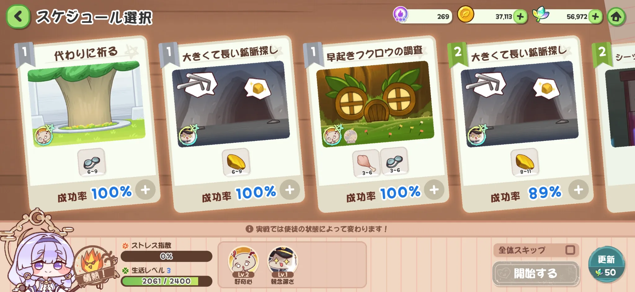 - 表示されている成功率はスケジュール選択時点のストレス指数における成功率。
