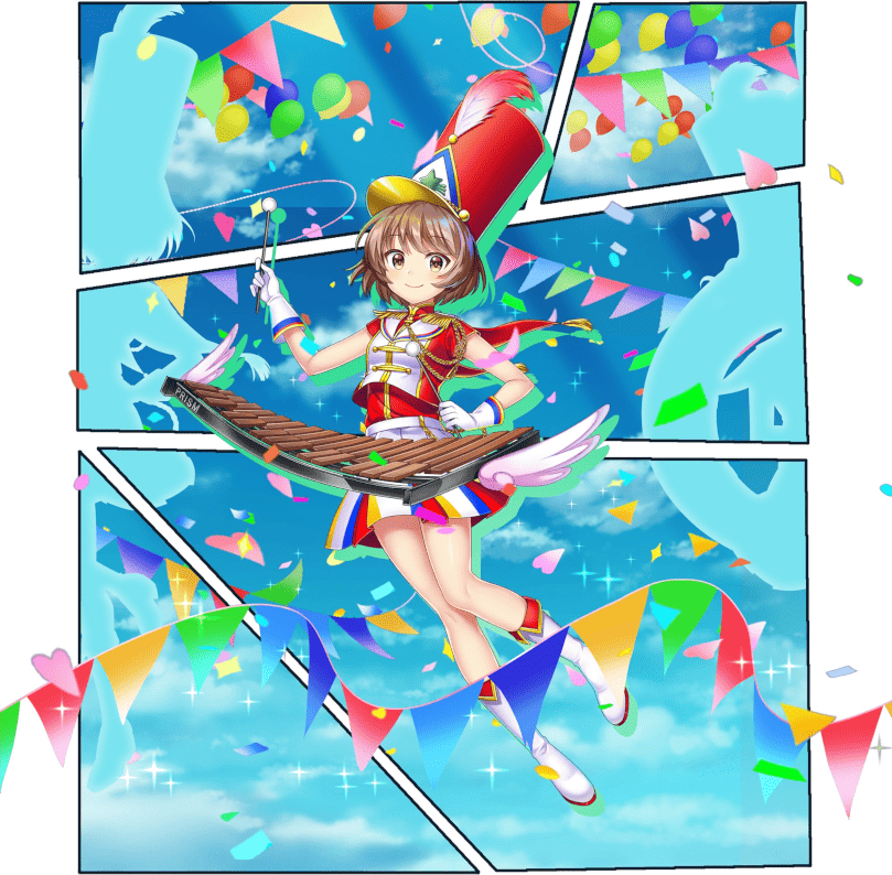 | リリカ・プリズムリバーのラストワード(東方LWオリジナル)。 人気ゆえに、それなりの頻度で開催されるプリズムリバー楽団のライブイベント。 最終日のアンコール曲は盛り上がりの絶頂であるが、リリカのソロ部分は『姉ふたりのソロを踏まえた上で引き立つ文脈的な感動』を演出するため、常に予測不能で飽きが来ない。 ……彼女の才能は、三姉妹が『三者三様でありながらもひとつの楽団』であるための要なのだろう。 |