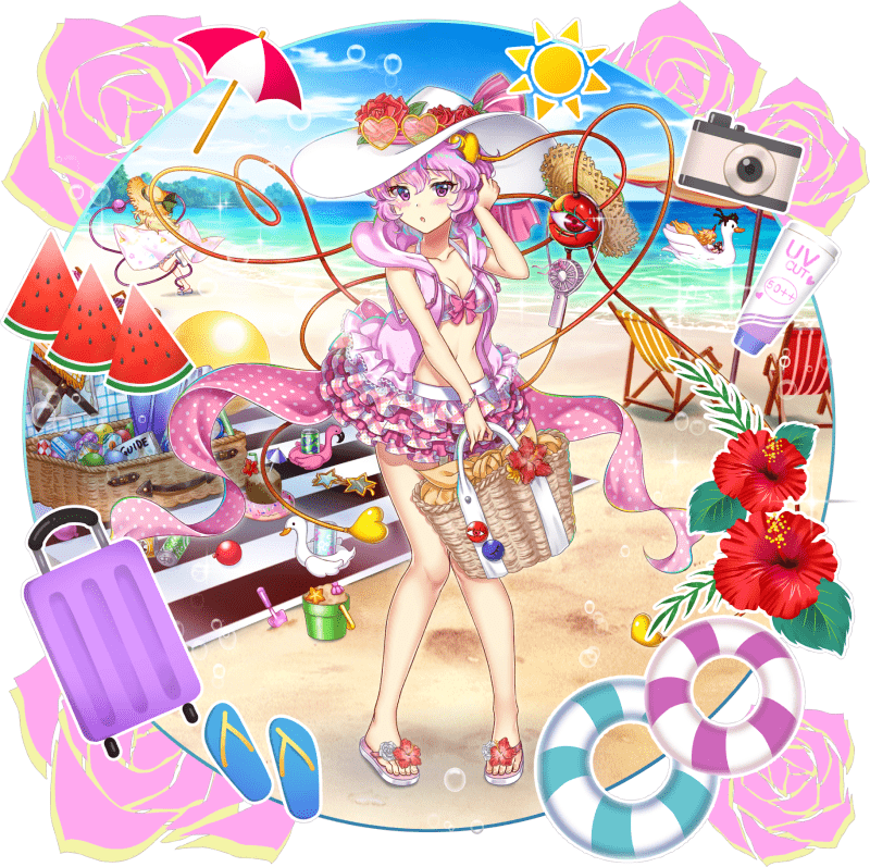 | 常夏に酔う世界の古明地さとりのスペルカード(東方LWオリジナル)。 読み方は「そうき『いもうととのおもいで』」。 妹と旅行を楽しむ弾幕。 心優しい古明地さとりは、妹への気づかいについても忘れない。 そう、彼女は本当に心優しいのだ。 「きっとこいしが食べたいのはこれよね」 たとえ心を閉ざした妹でも、その内側には思いがあるはず。 そしていつかは、再び心を開く日が来ると信じている。 だがそれは、お人形遊びとどう違うのか。 | |