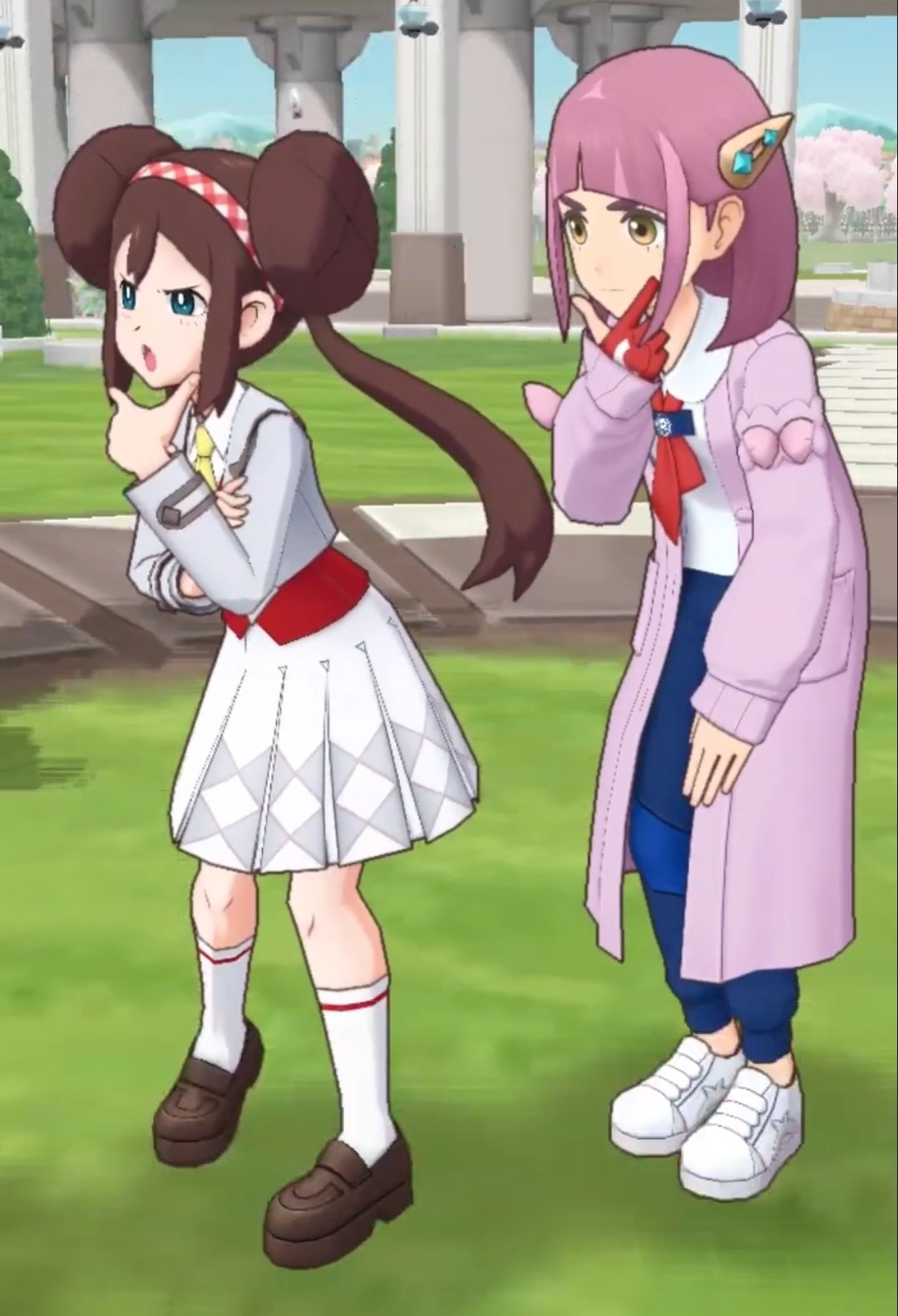親指と人差し指を開いて顎に当てるポーズはポケマスプレイヤー的にはメイの印象が強いものであり、さっそく紹介PVの時点でメイと二人で同じポーズをする光景が見られた。