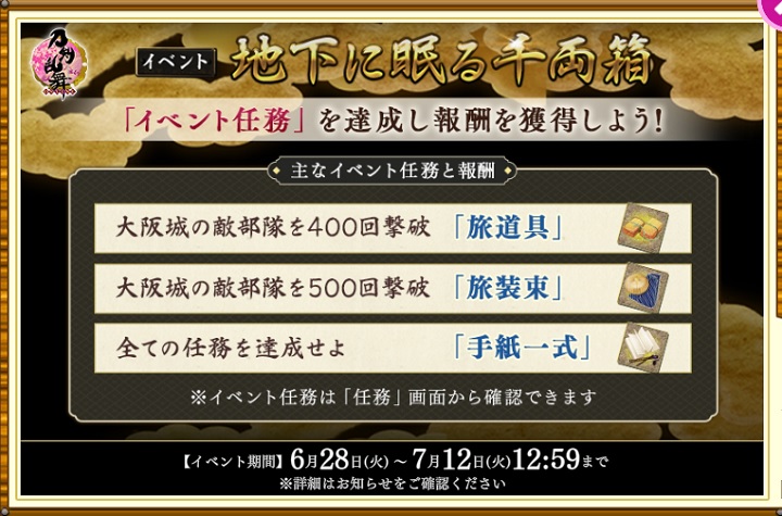 - 前回の地下に眠る千両箱イベント → 地下に眠る千両箱'22春