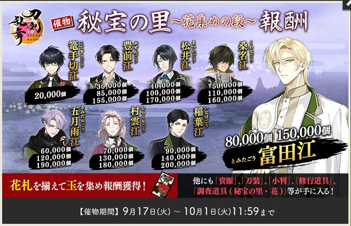 | 短冊札入手 | - | - | - | 1枚入手 | 1枚入手 | 1枚入手 |